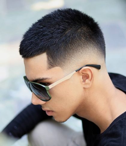 Несложно догадаться, что эта мужская стрижка пришла к нам из мира спорта. Ей тоже характерен переход длины, но не такой резкий и радикальный. Чаще всего уже в височной части остается 1-2 см, а сверху – вдвое больше.